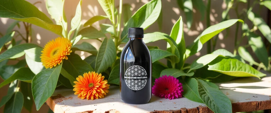 Preparación líquida concentrada a base de extractos de plantas medicinales, que se ingiere para fortalecer el organismo.